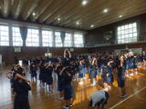 今朝は、体育館で「音楽朝会」がありました。