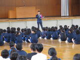 3校時は、6年生の「生命の授業」がありました。NPO法人の「くまがやピンクリボンの会」の皆さんが、6年生に向けた「がんサバイバー」の体験談を中心に、命の大切さや検診の重要性をわかりやすく丁寧にお話ししてくださいました。がんは日本人の2人に1人がかかる病気であること。乳がんは男性もかかる病気であること。がんにならないための生活習慣や検診の重要性を知ることができ、子供たちも「家に帰ったらお母さんだけでなく、お父さんにも話します。」「がんになっても、早期に見つけて治療すれば治ると知りました。」など感想を発表していました。改めて、自分の命や大切な人の命について深く考えるよい機会となりました。
