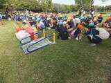 今日は、すがすがしい秋晴れの空の下、「古代蓮の里」へ全校遠足へ行きました。なかよし班(縦割り活動)で校庭に並び、歩いて向かいました。公園内では、班ごとにクイズやゲームに挑戦するオリエンテーションを楽しみながら行い、行田タワーからの田んぼアートも見学できました。仲良くお弁当を食べて、午後からは公園内で班ごとに考えた遊びで楽しく過ごしました。