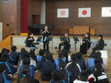 木管5重奏の「Pentas」さんが来校し、クラリネット、オーボエ、フルート、ファゴット、ホルンの素敵なハーモニーを聴かせてただ来ました。各楽器の紹介やソロ演奏もあり、身近で楽器を見たり、音色を聴くことができました。アンコールのドラえもんの曲では、歌ったり体を動かしたりしながらみんな楽しんでいました。