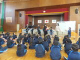 今日は、2校時から4校時にかけて、低・中・高の学年ブロックごとに、体育館で「芸術鑑賞会」を行いました。