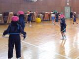業間休み、3・4年生の子供たちが体育館で、各々バランスボールやフラフープ、ドッジボールなどを使いながら、夢中になって遊んでいました。校庭が使えない日でも、エネルギーを発散する時間は、子供たちにとって貴重な時間です。