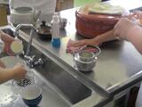 R80428_音楽(1年) & 初めての調理実習(5年) 投稿: 校長 (18:13) 3校時、1年生の子供たちが、曲の雰囲気に合わせて、腰をかがめたり、こっそり歩いたりしながら、リズム遊びをしていました。子供たちは、友達の動きをまねしながら、笑顔いっぱいで楽しんでいました。 5校時、5年生の子供たちが、初めての調理実習としてお茶入れに挑戦していました。グループで協力し、湯の量や注ぎ方を工夫しながら、心を込めた一杯を完成させていました。 -