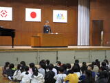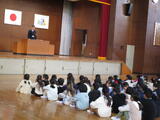 体育館にて第2学期終業式を行いました。まず校長先生からは「お正月」について、日本のお正月のいろいろな行事や風習をその意味を考えながら、ぜひ味わってみましょうというお話がありました。その後に、2学期の間とてもよくがんばった、各学級1名の児童が、「はすのこ賞」を授与されました。最後に、宇津木先生から冬休みの過ごし方について、守ってほしい5つのことを子どもたちと一緒に分かりやすくお話をしてくれました。