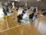 今日の2、3校時は、3~6年生の体育館で書初め競書会がありました。