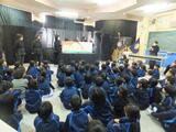 1・2年生に向けて、行田市で活動されている「劇団ぽっけ」さんが、1.2年生に向けて人形劇を披露してくださいました。ずっと楽しみにしていた子供たちは、集中して最後まで見入っていました。大きな絵本がみんなの周りを囲むと、歓声がわきました。来年も来てくださるそうです。楽しみですね!